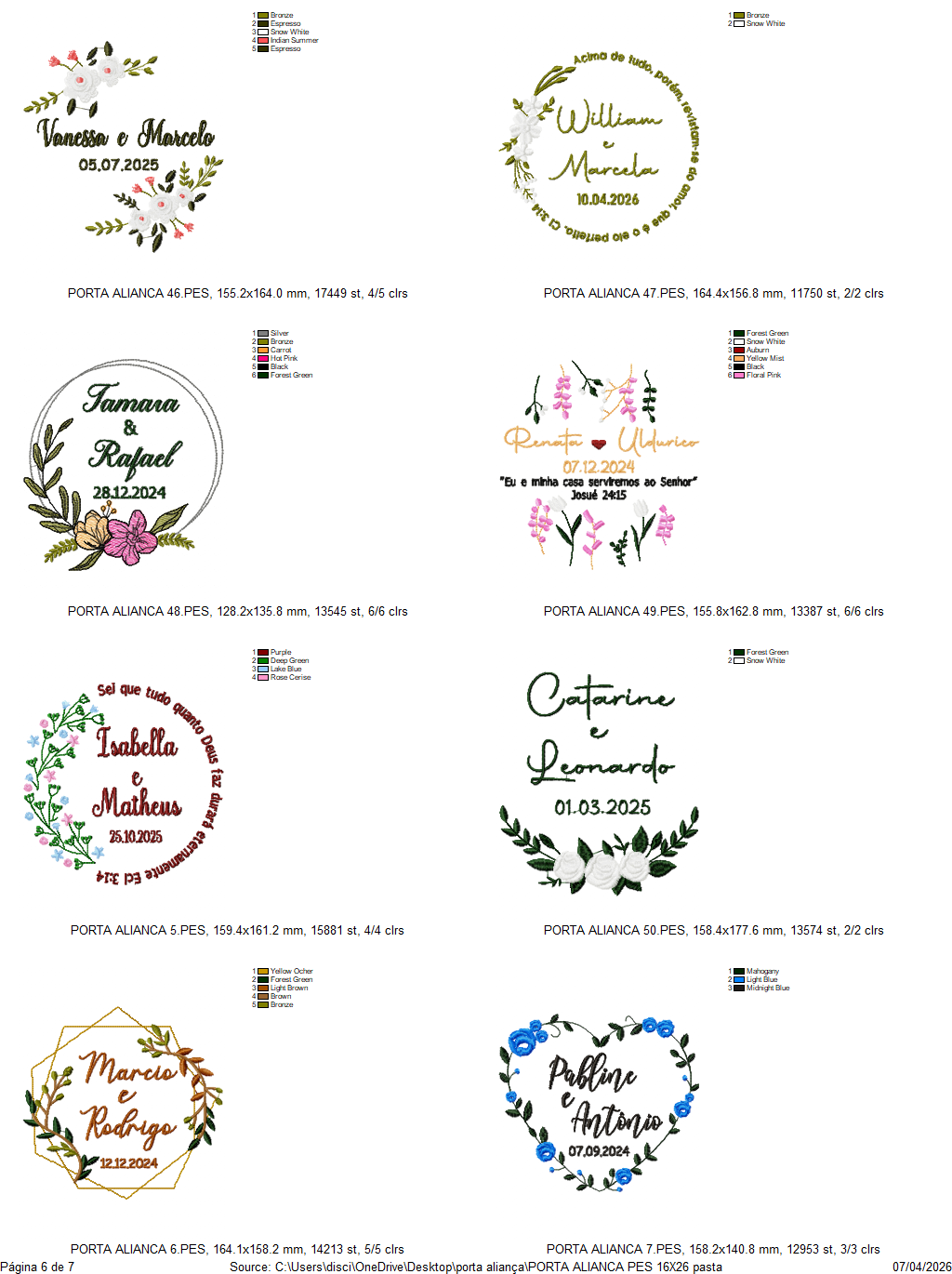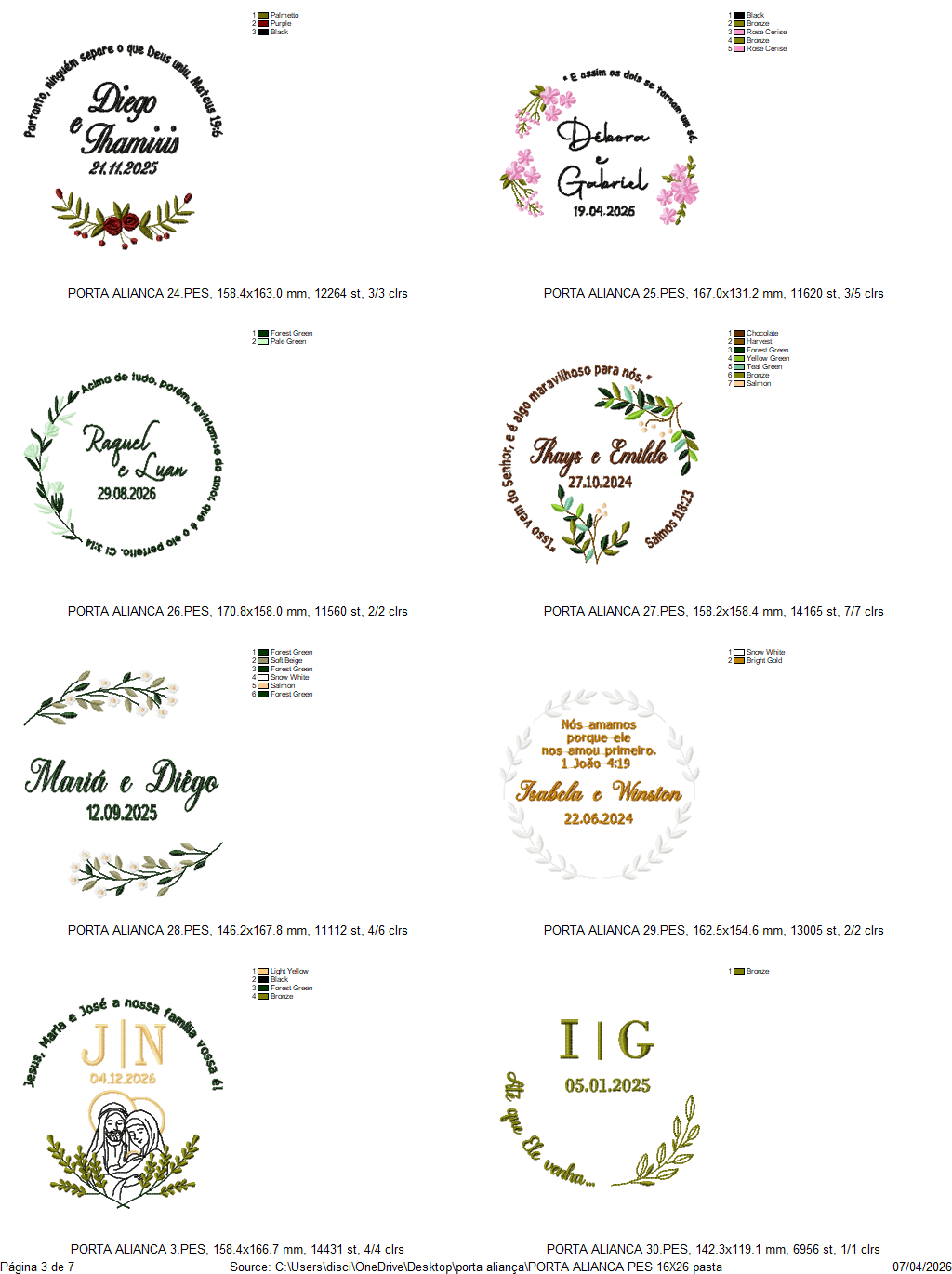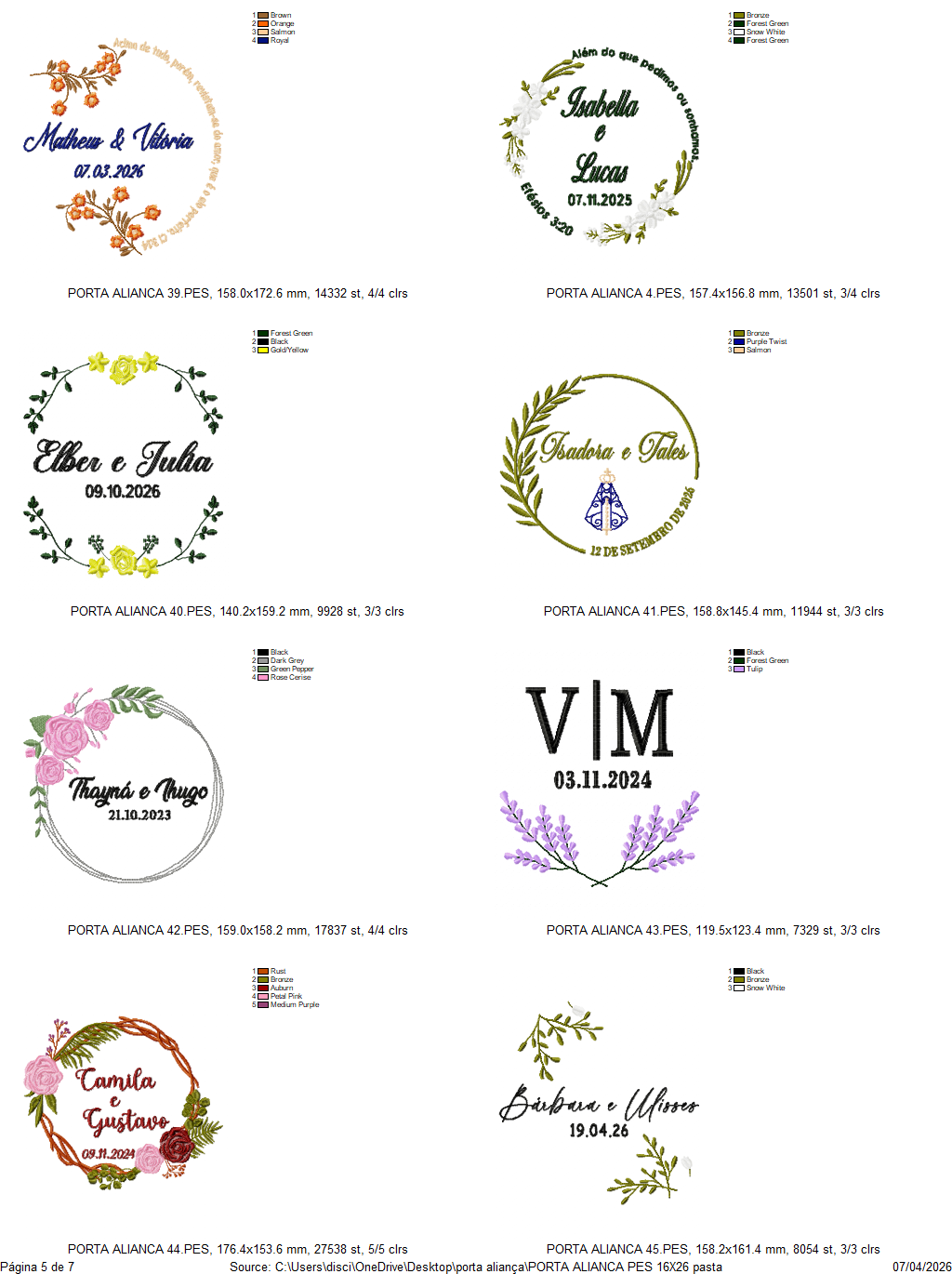 Compatibilidade: Arquivos compatíveis com os principais softwares de bordado, como Wilcom, Embird, PeDesign e outros.
