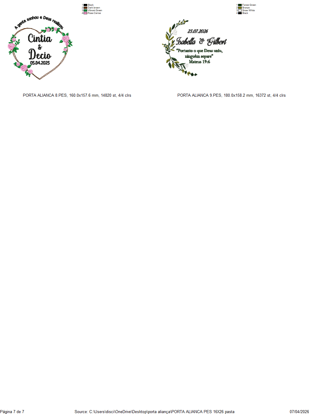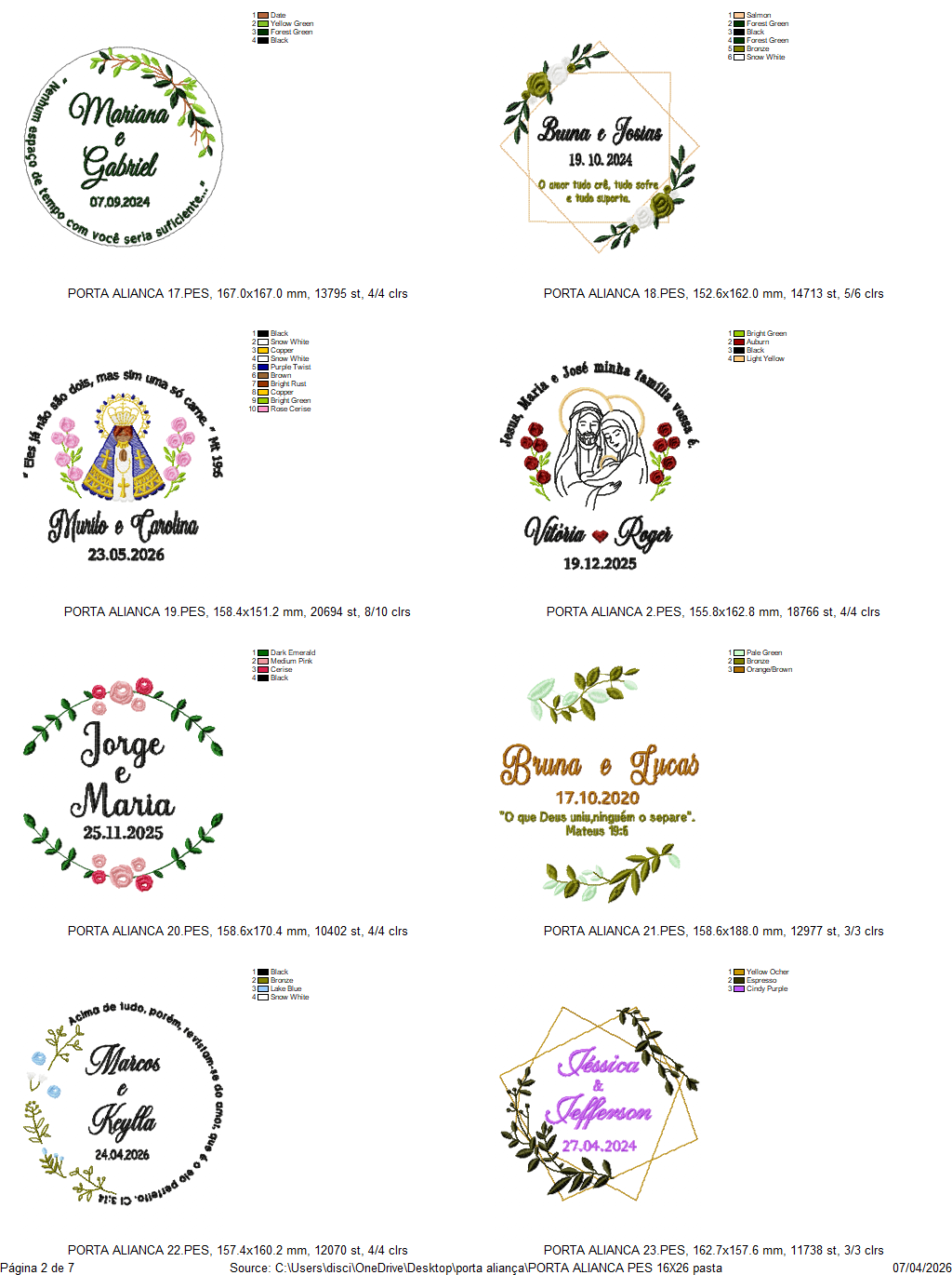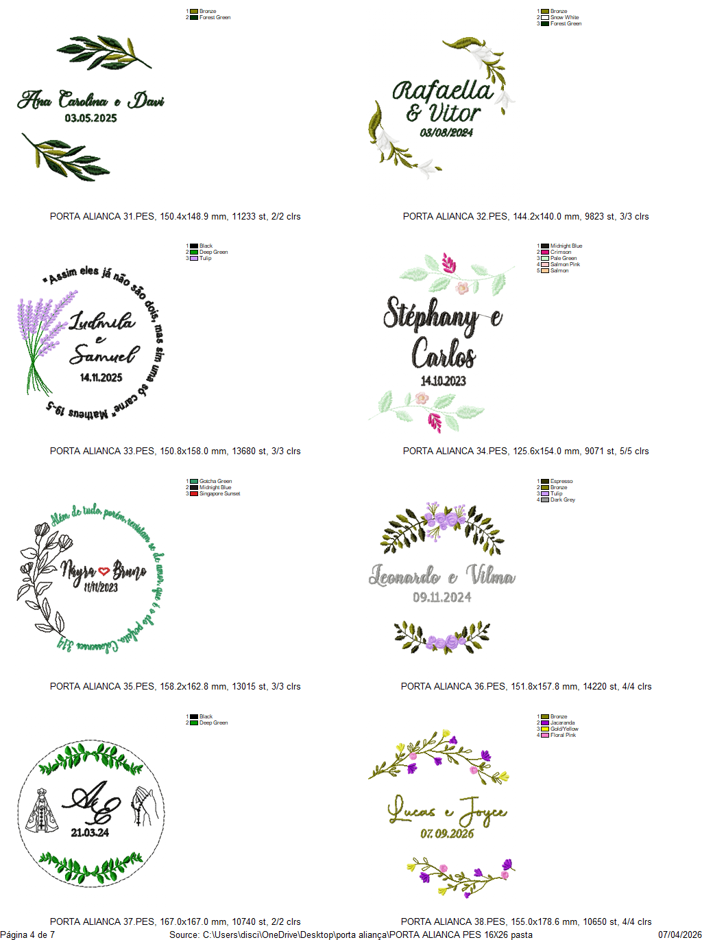 Compatibilidade: Arquivos compatíveis com os principais softwares de bordado, como Wilcom, Embird, PeDesign e outros.